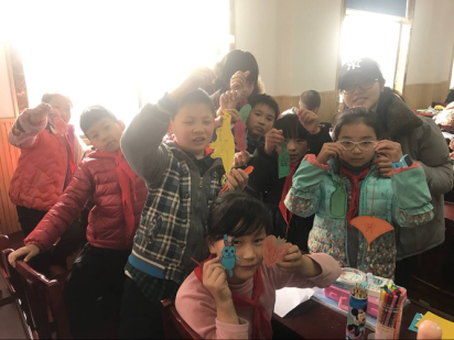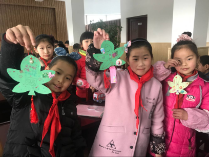 学生一起制作书签。由于提前准备了素材可供参考,孩子们仿照素材纷纷创作,制作了很多好看的书签。在做书签的同时,也寓教于乐,传授了很多正能量的名言警句。在做手工的1个小时内,现场气氛一直活跃。令人感动的是,孩子们都怀着一颗感恩的心,有孩子说,想做书签送给爸爸妈妈,也有孩子将做好的书签送给了我们。
