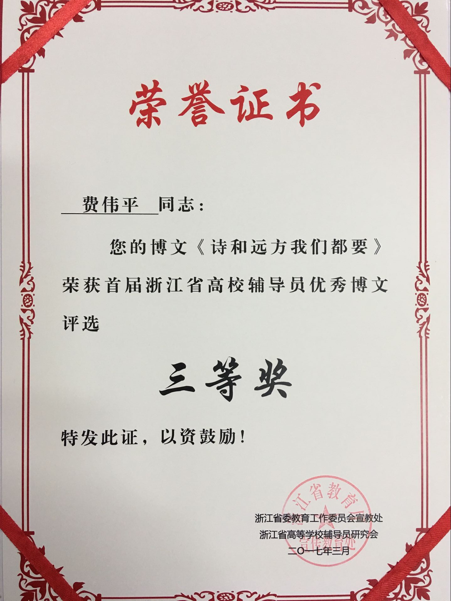 同人漫画 费伟平老师博文《诗和远方我们都要》荣获首届浙江省高校辅导员优秀博文评选三等奖