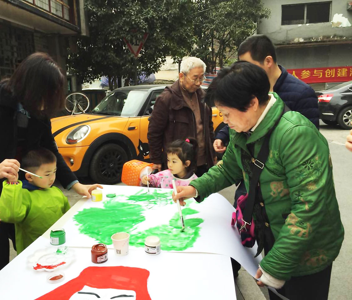 活动分为两个部分:绿色绘制和绿色交换。在绿色绘制中,志愿者们与社区居民一起绘制了三副海报。其中名为“经院牵手葵巷”的海报中,象征同人漫画