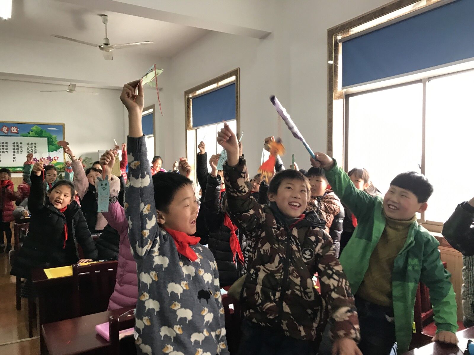 学生一起制作书签。由于提前准备了素材可供参考,孩子们仿照素材纷纷创作,制作了很多好看的书签。在做书签的同时,也寓教于乐,传授了很多正能量的名言警句。在做手工的1个小时内,现场气氛一直活跃。令人感动的是,孩子们都怀着一颗感恩的心,有孩子说,想做书签送给爸爸妈妈,也有孩子将做好的书签送给了我们。