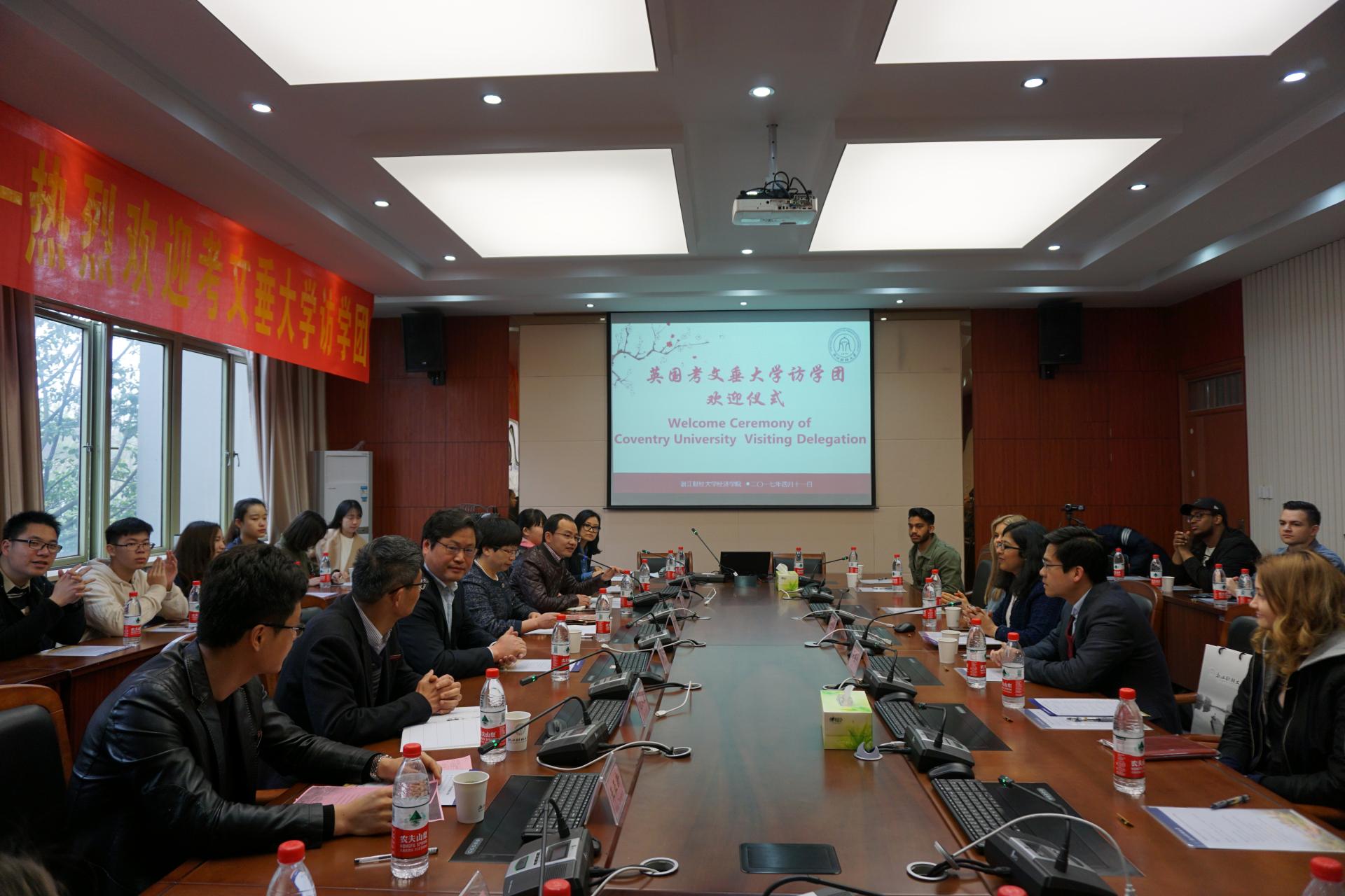 在6号楼210会议室召开了英国考文垂大学访问团师生欢迎仪式。热烈欢迎考文垂大学师生交流团(国贸团)一行20人访问我校。国际交流处副处长管春林、同人漫画