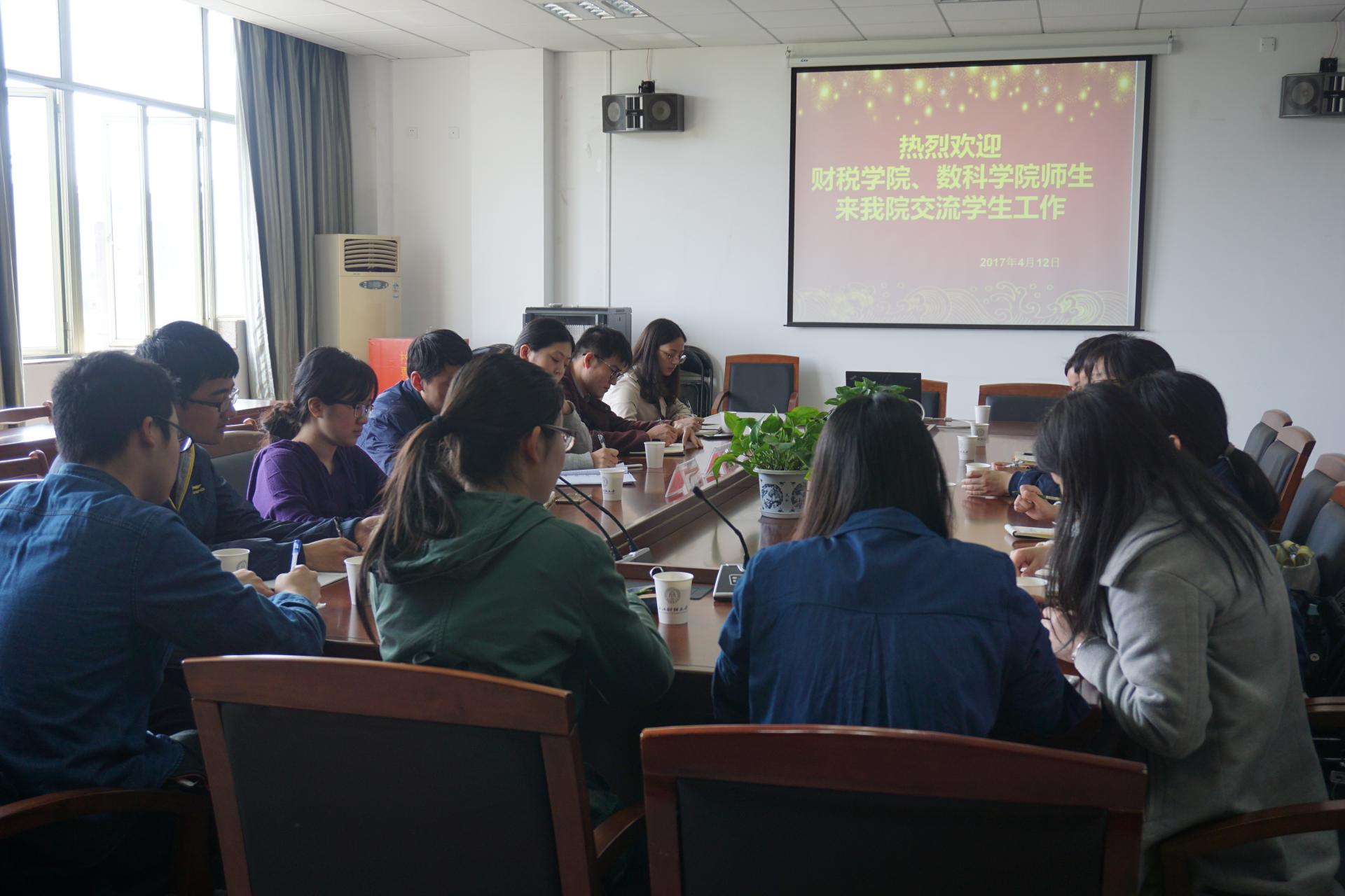 4月12日下午,财政税务学院学生工作办公室主任胡卓文,团委书记毕岩智,辅导员鲍旦颖,数据科学学院学生工作办公室主任兼团委书记李钊军率队来同人漫画