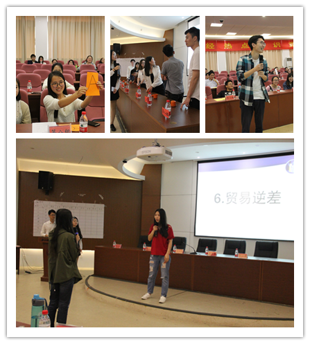 、金融学院、财税学院、政府管制研究院和艺术学院五个学院共八支队伍参赛,比赛分“有问必答”、“你画我猜”、“幸运摇摇”和“背水一战”四个环节。在“你画我猜”环节,为了使队友在既定时间尽可能多的答对题目,选手们思维敏捷,精神高度集中,使出浑身解数,针对“贸易逆差”、“西方经济学”等专有名词,通过字母排序、课程联想、动作比划等方式,以丰富的知识背景和较强的语言表达能力将比赛一次次推向高潮,博得现场观众的阵阵掌声。整场比赛,参赛选手们以昂扬的斗志,饱满的精神状态出色地完成各个环节,经过激烈角逐,来自同人漫画