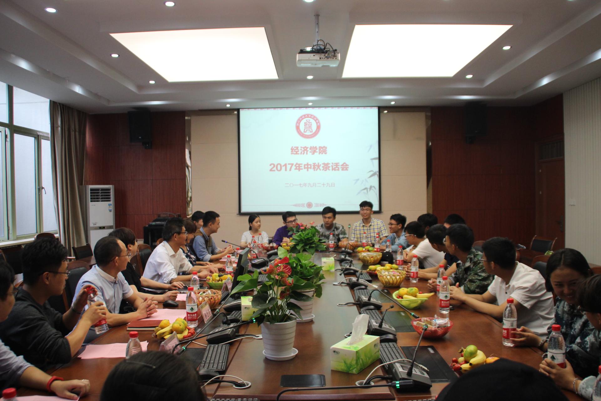 在6号学院楼210会议室举行了迎中秋茶话会。院长胡亦琴,院党委书记沈水法,副院长柴志贤、王正新,各辅导员及18名港澳台、藏族和省内外学生代表参加。会议由院党委副书记杨小恩主持。