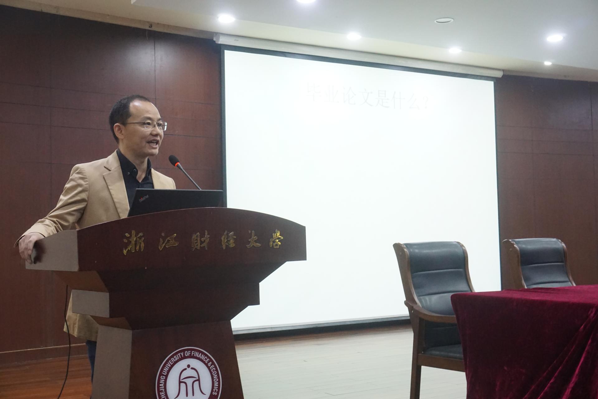 柴志贤老师首先就毕业论文的写作目的,选题、开题及文献综述以及毕业论文要求与撰写规范等方面做了详细的介绍。高晓菁老师则从毕业实习、毕业资格审核、毕业论文写作规范等方面着重强调了大家需要注意的问题。杨小恩老师用直观数据分析了当前就业形势,强调了找工作过程中的注意事项,并鼓励毕业生及时调整心态,从心理、信息、材料、技巧等方面做好充分准备,为顺利就业打好基础。最后,相关老师对毕业生工作时间表、考研、就业派遣手续办理、党组织关系转出等重要事项进行详细讲解。