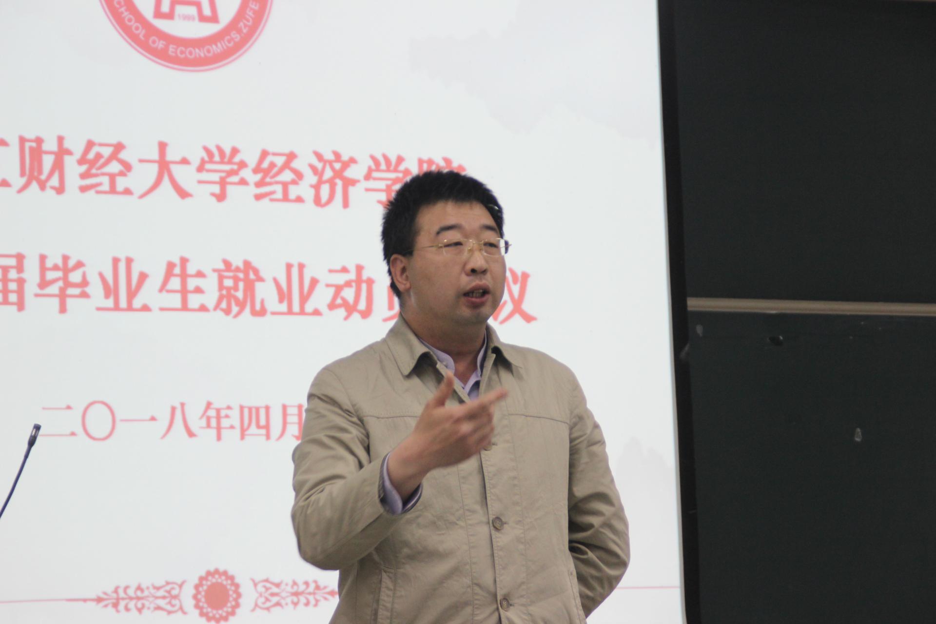 2015级学生就业动员大会在学院楼111举行。党委书记沈水法、副院长柴志贤、党委副书记杨小恩、经济系李钧老师、李佳慧老师、15经济3班班主任黄禾雨老师,教学秘书高晓菁老师、2019届带班辅导员费伟平、李伶俐、曹仲晔和2019届全体学生参加会议,会议由学办主任崔泰铭主持。
