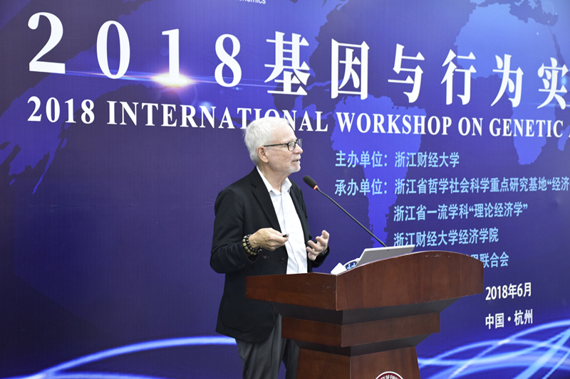 国际著名遗传行为学家、香港科技大学Richard Ebstein教授作了题为“实验经济学、工商管理及社会科学在基因分子学层面的研究(2008-2018)”(A Molecular Perspective in Experimental Economics, Business, and the Social Sciences: 2008-2018)的主旨报告,对近十年来利用基因遗传学技术开展的经济学、社会科学领域的研究做了介绍。