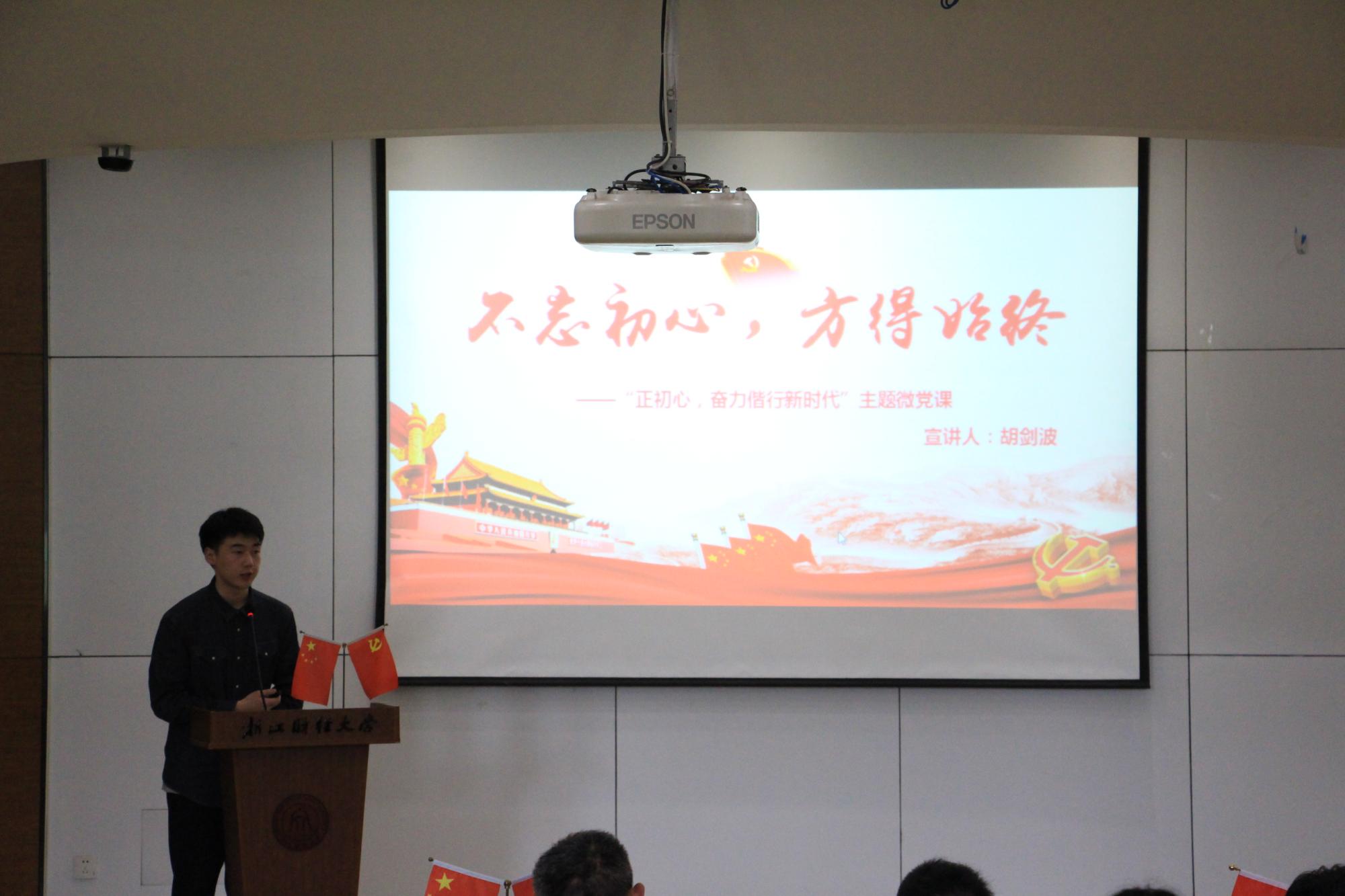 4月25日下午,学院在6号楼219报告厅举办第五届微党课大赛。学院党委书记沈水法,党委副书记杨小恩,校党委组织部盛山锋及学院学生支部书记、辅导员老师出席并担任评委,学生党员、入党积极分子共200余人观看比赛。