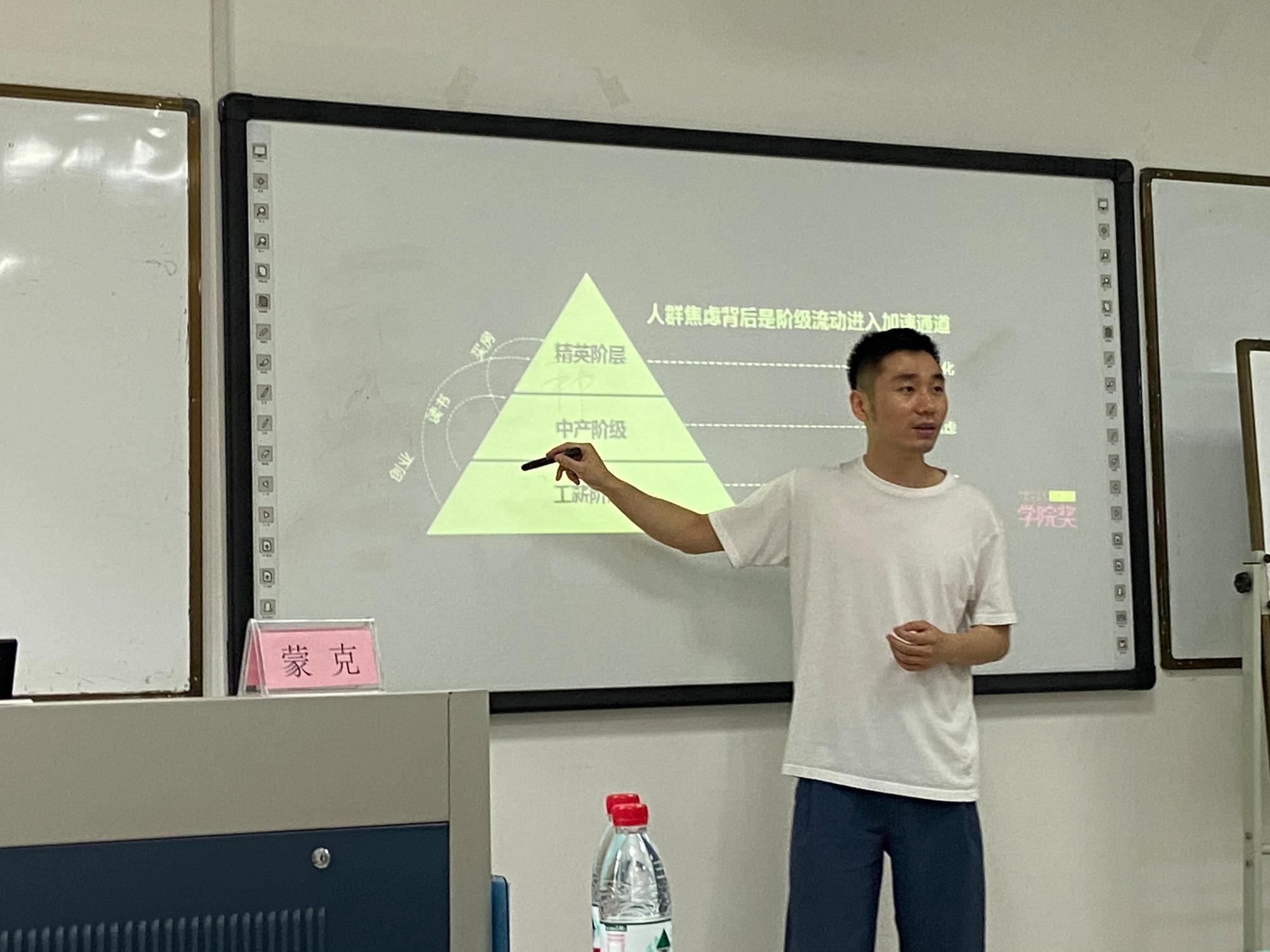 正式开讲阶段,蒙总首先讲述了好的策略是人性洞察。他提出行业的兴起是跟随人口结构来的,以马斯洛需求层次理论展开,根据人们需求层次的不同将消费者分为不同的层级,进而通过消费行为学去洞察商业发展规律。这启示同学们思考要有延展性,不要只想当下的事物,要将眼光放长远,通过洞察客观事物,去发现其背后的普遍规律。随后,蒙总为同学们讲解了创新的方法论。通过获取大量信息、对信息进行归纳、洞见、创建链接四步法实现创新。最后,他提出内容的本质是制造冲突,落差是传播势能。以一个个广告案例为例,为同学们讲述了好的内容是情感共鸣,要培养自己敏锐的共情能力和判断力。此外,蒙总更是耐心地回答了同学们的提问,讲座的气氛非常活跃有趣。