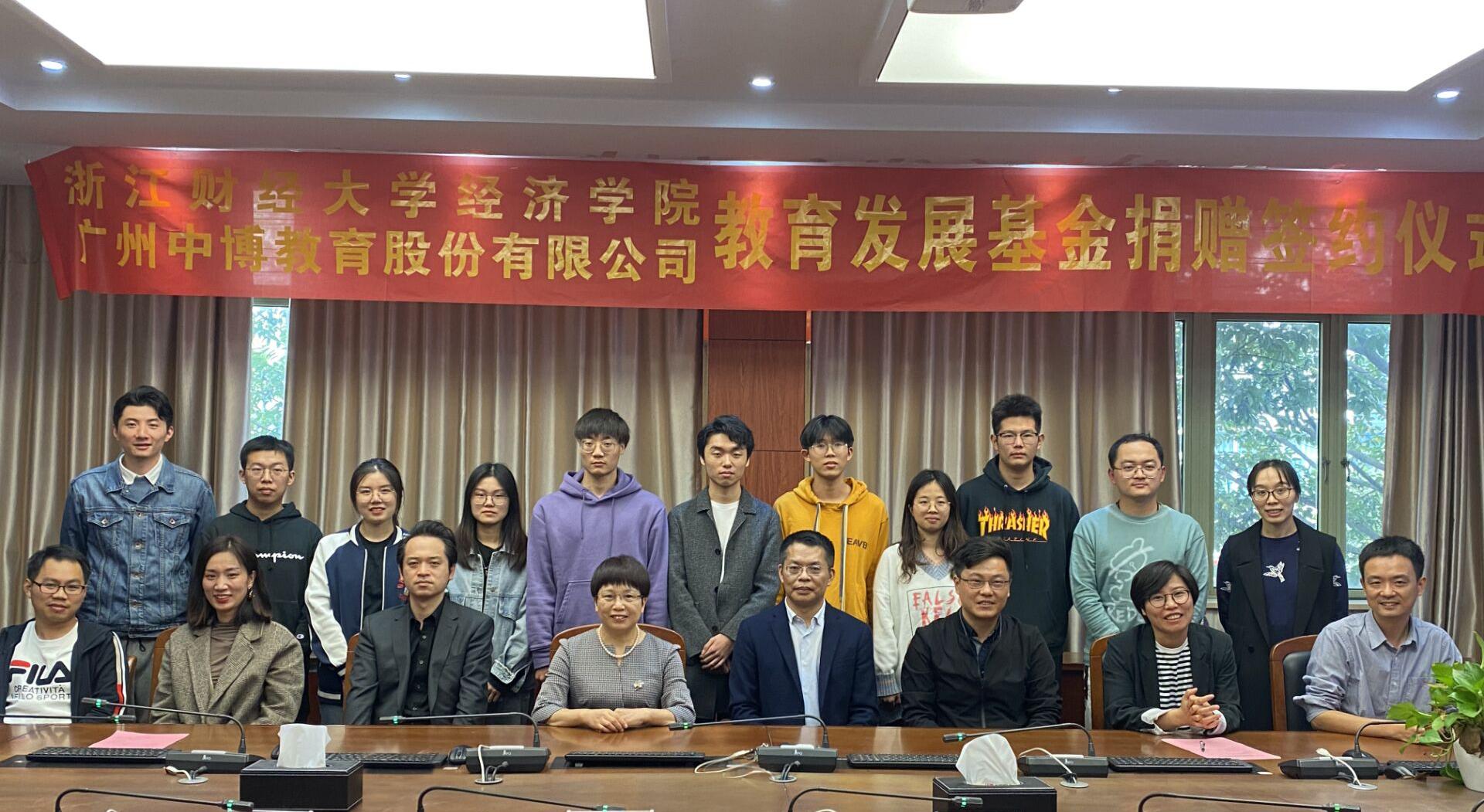 10月22日下午,学院与广州中博教育股份有限公司在学院楼210会议室举行教育发展基金捐赠签约仪式。广州中博教育股份有限公司CEO王小和、浙江分公司总经理邱芳、市场经理朱冬雪、公考事业部总监李玉生、院长王正新、党委书记胡亦琴、副院长罗俊、学办主任李伶俐、团委书记曹仲晔、辅导员俞一献与部分学生代表参加了本次签约仪式。会议由党委副书记崔泰铭主持。