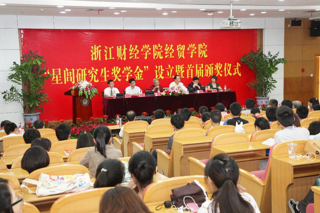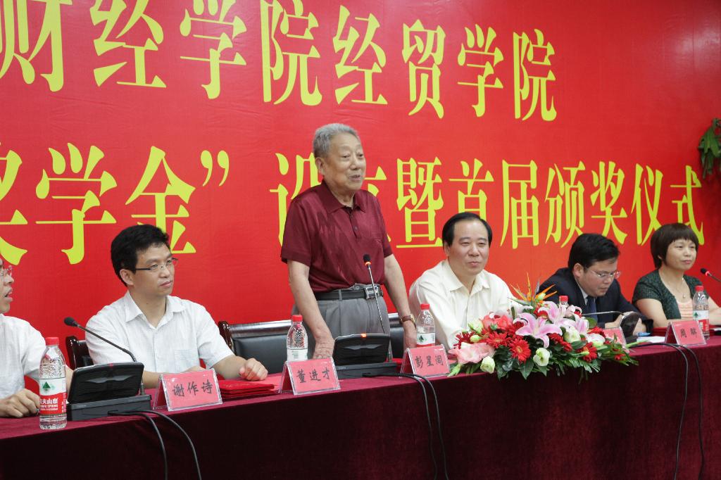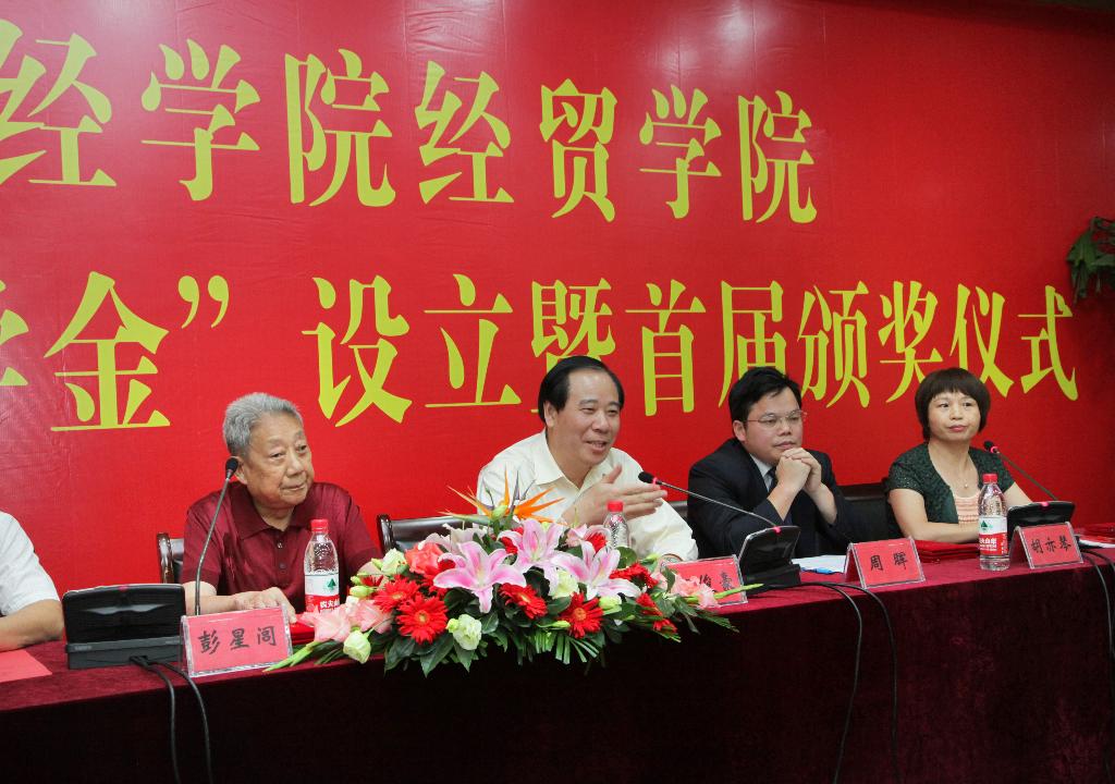 举行。参加仪式的领导和嘉宾有:奖学金发起人中南财经大学的彭星闾教授、奖学金资助者周晖教授、院长王俊豪教授、研究生处副处长董进才教授、学院院长谢作诗教授及经贸学院师生。仪式由学院党总支书记胡亦琴教授主持。