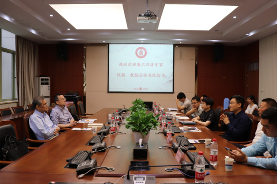 院长王正新代表学院对钱颖一教授的到访表示热烈的欢迎,并介绍了学院人才培养、科学研究与学科建设等方面的情况。钱颖一教授充分肯定了学院的发展成绩,并针对学院发展面临的问题,提出了建设性意见。与会人员与钱颖一教授围绕人才培养理念创新、经济学前沿研究方向、学科特色凝练等方面展开了深入的讨论。