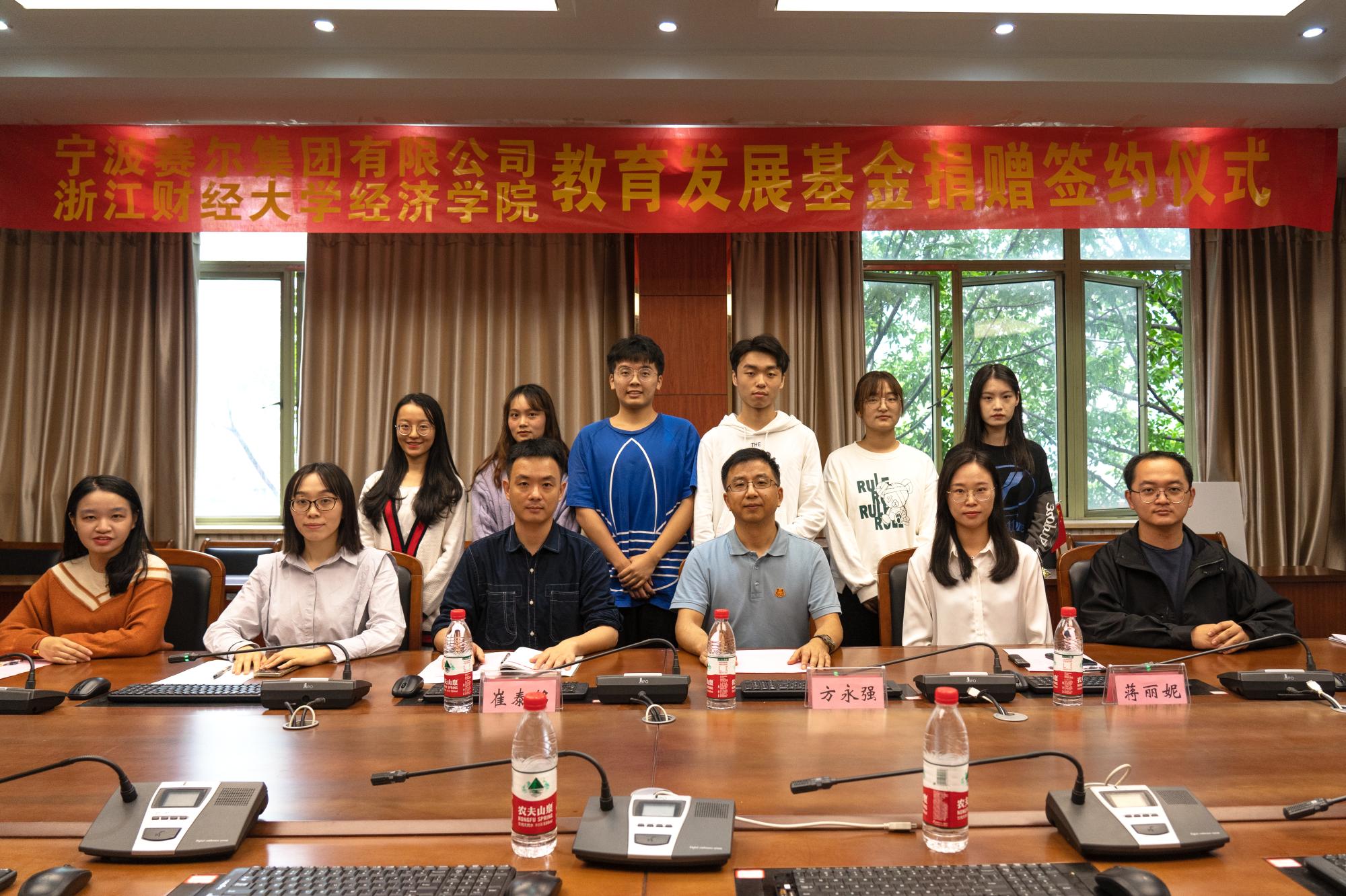 与宁波赛尔集团举行教育发展基金捐赠签约仪式暨“赛尔外贸实战特训营”第一期开班仪式,联通校企双方资源,推动人才培养再上新台阶。宁波赛尔集团副总裁方永强、招聘经理蒋丽妮、党委书记胡亦琴、党委副书记崔泰铭,辅导员及特训营学员代表出席仪式。