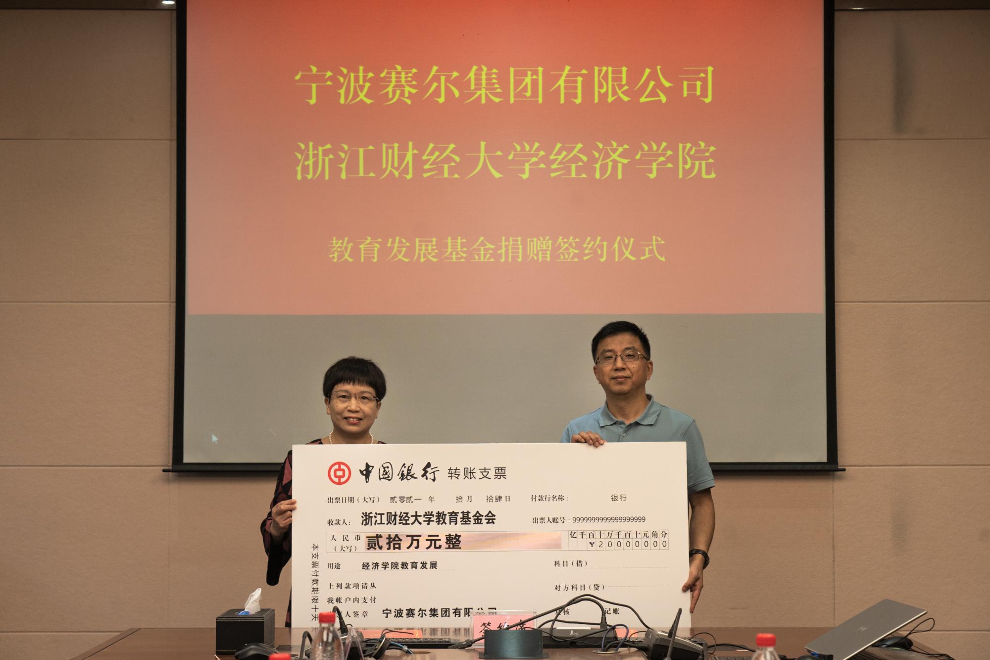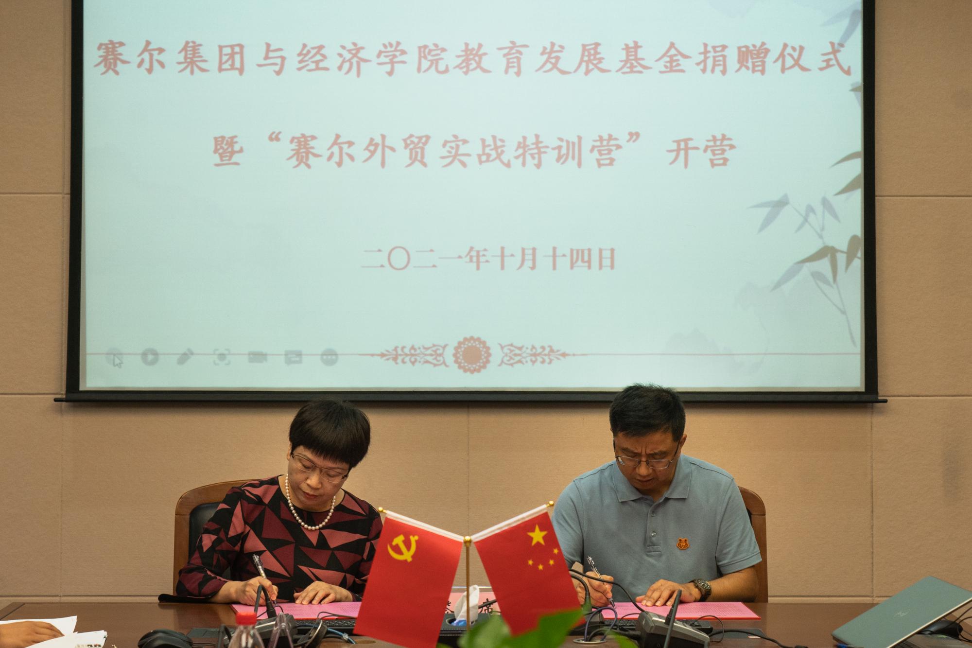 一贯合作良好,此次携手开设“外贸实战特训营”,希望能进一步加强与学院、学生的交流,创新合作模式,为同学们提供走向社会的“敲门砖”,外贸实务的“微体验”,成为同学们职业规划的“咨询处”。捐赠签约仪式上,胡亦琴与方永强代表双方签署捐赠协议。宁波赛尔集团向学院捐赠20万元,用于学院教育事业发展。