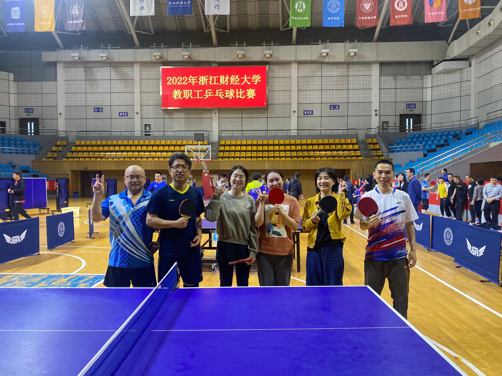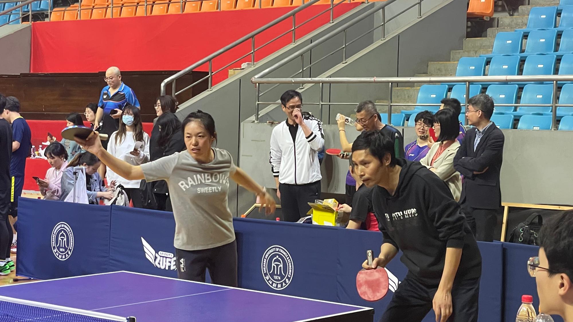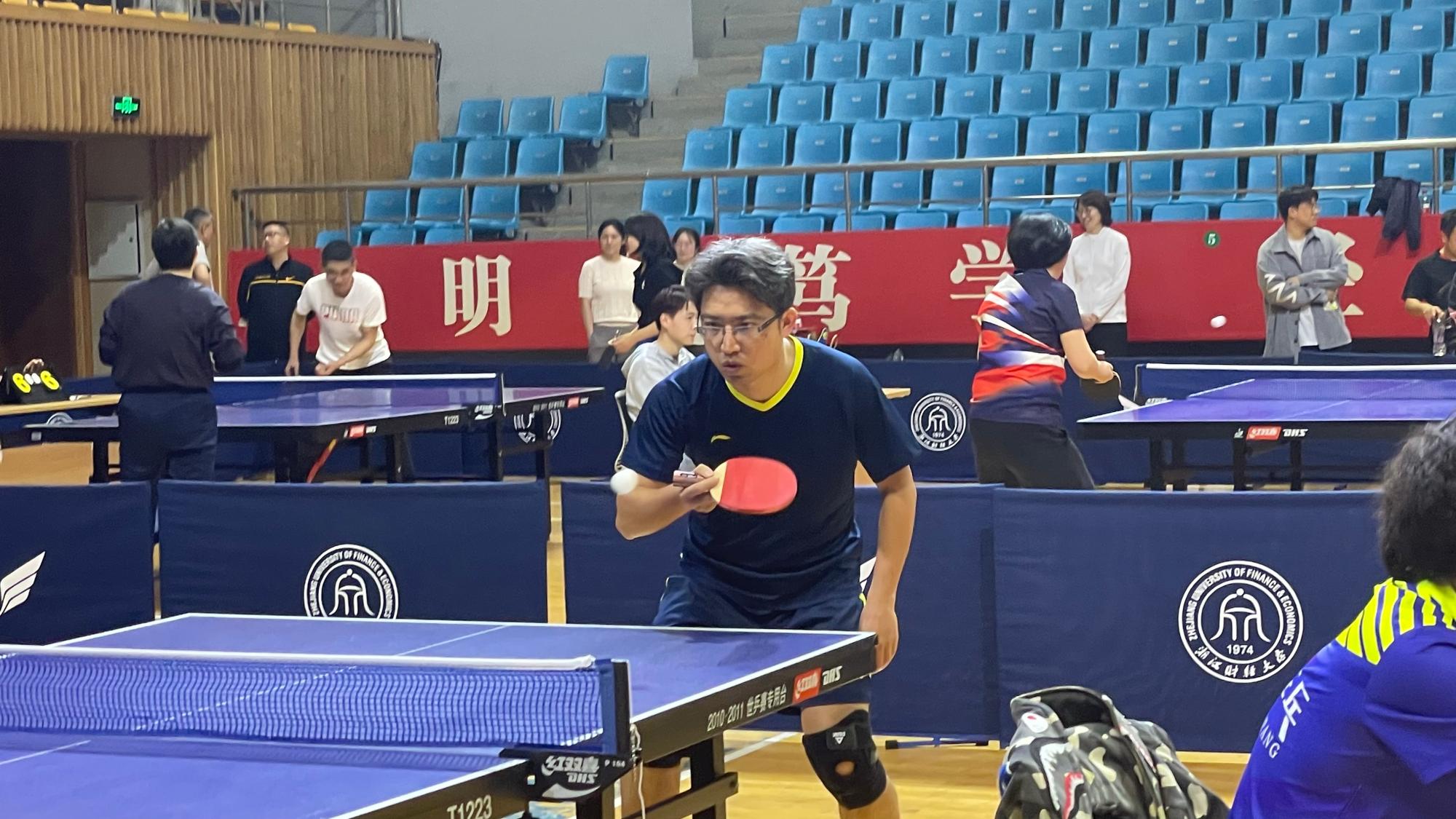 教职工团结协作,默契配合,在男单、男双、混双等比赛中发挥出色,分别以3:2、3:2的比分战胜了经信国创和马克思主义学院,获得小组第二,成功晋级八强。