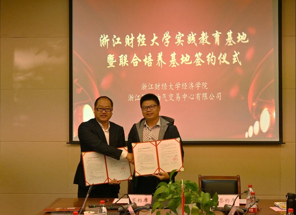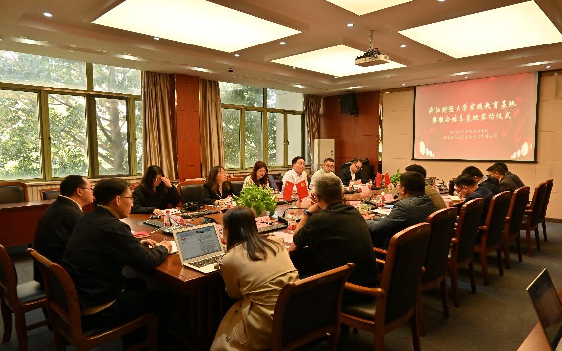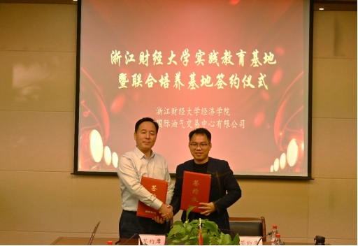 与浙江国际油气交易中心有限公司举行实践教育基地暨联合培养基地签约活动。浙江国际油气交易中心有限公司副书记、董事、工会主席纪宏涛,总经理助理、产品研发总监、产品事业部部长王白冰,人力资源部、党群工作部部长杨军杰,人力资源部、党群工作部部长助理胡少璇,人力资源部、党群工作部部长高级主管俞燕,学院副院长罗俊,党委副书记崔泰铭,副院长邓晓军,国际贸易系主任吴宏,社会服务负责人潘李芳,国际贸易系教师冯阔、刘毅群、程书燕及研究生辅导员俞一献、刘海等共同出席。