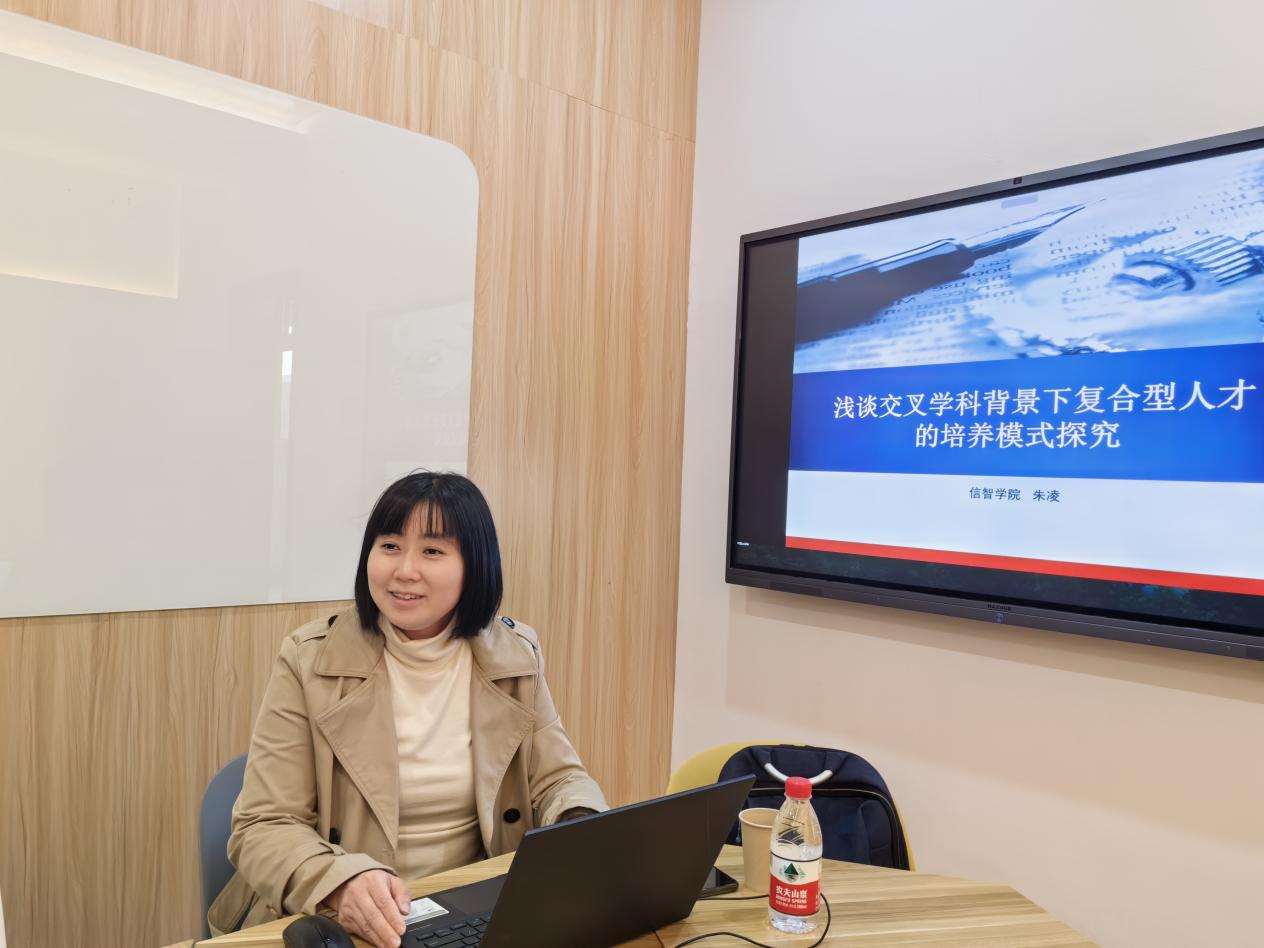邀请信智学院朱凌副教授举办了题为“浅谈交叉学科背景下复合型人才的培养模式探究”的教学双周论坛。本次论坛由副院长邓晓军教授主持,方杰炜、孙琴、林晏清、潘登、许一帆等青年教师参加了会议。