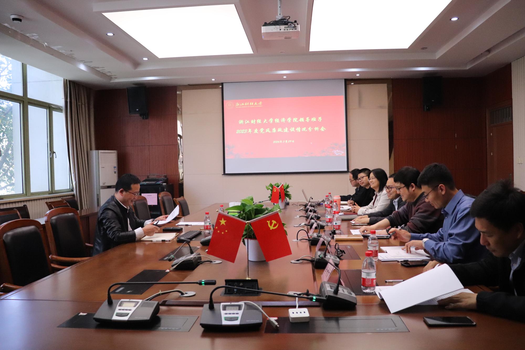 为贯彻落实党的二十大精神,深入学习贯彻习近平总书记关于党的自我革命的重要思想,深化细化“清廉学院”建设,坚决扛起护航“新财经战略”实施的职责与使命,为学院跨越式发展提供坚强保障,近日,学院召开2023年度党风廉政建设分析会。校纪检监察室主任范建锋到会指导,院领导班子成员参加会议。会议由学院党委书记徐奇伟主持。