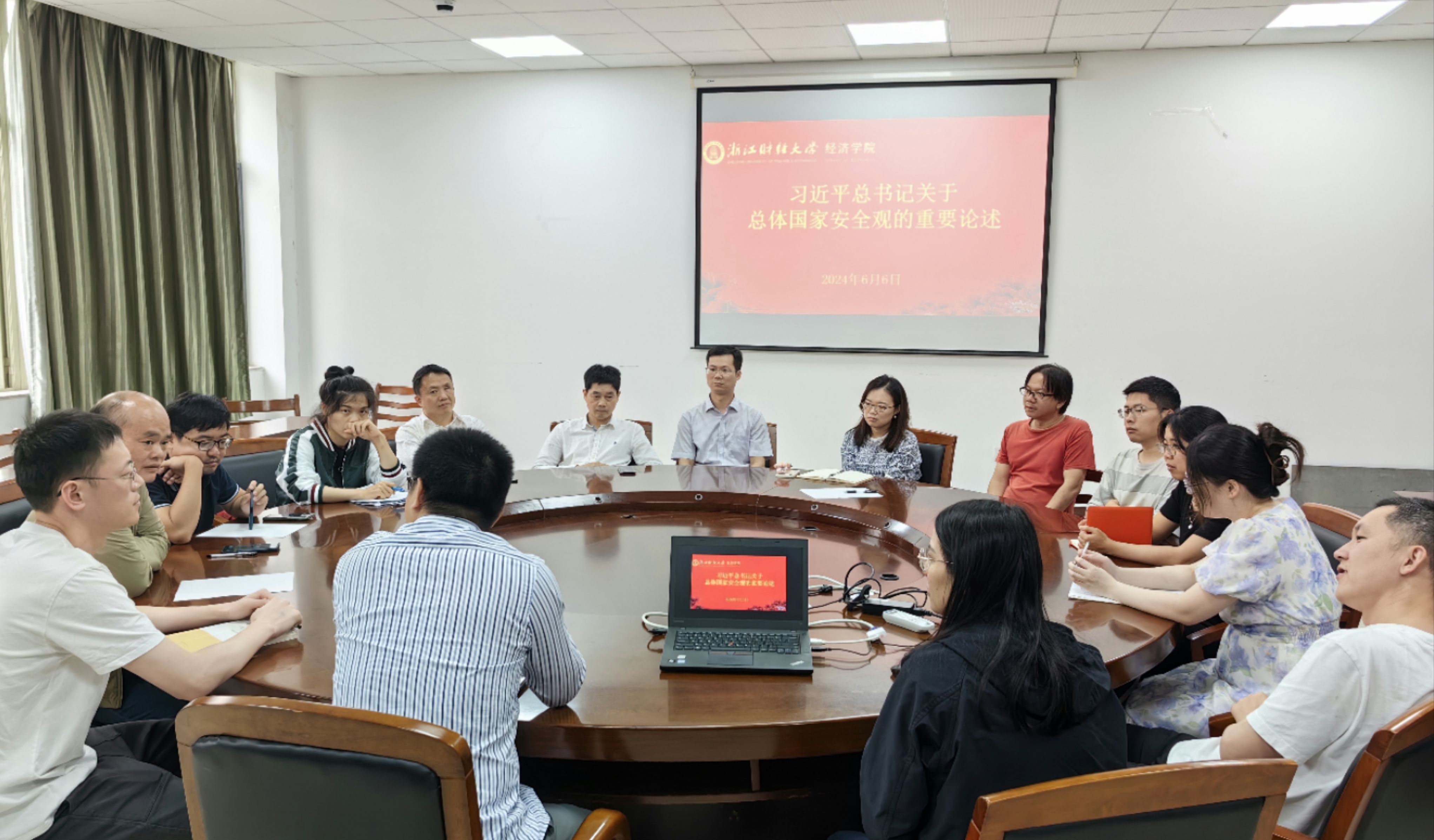 6月6日下午,西经教研室全体老师在6-304会议室先学习《习近平总书记关于总体国家安全观的重要论述》后举行了“《宏观经济学》思政元素教学案例引入探讨”的专题教研活动。刘艳华、熊红星、黄达强、张湖东、麦正锋、程晓宇、李垚、孙献贞、吴枢、丁峰、陈俞有、郭文敏等15位老师参加了此次活动,活动由教研室主任唐勇老师主持。