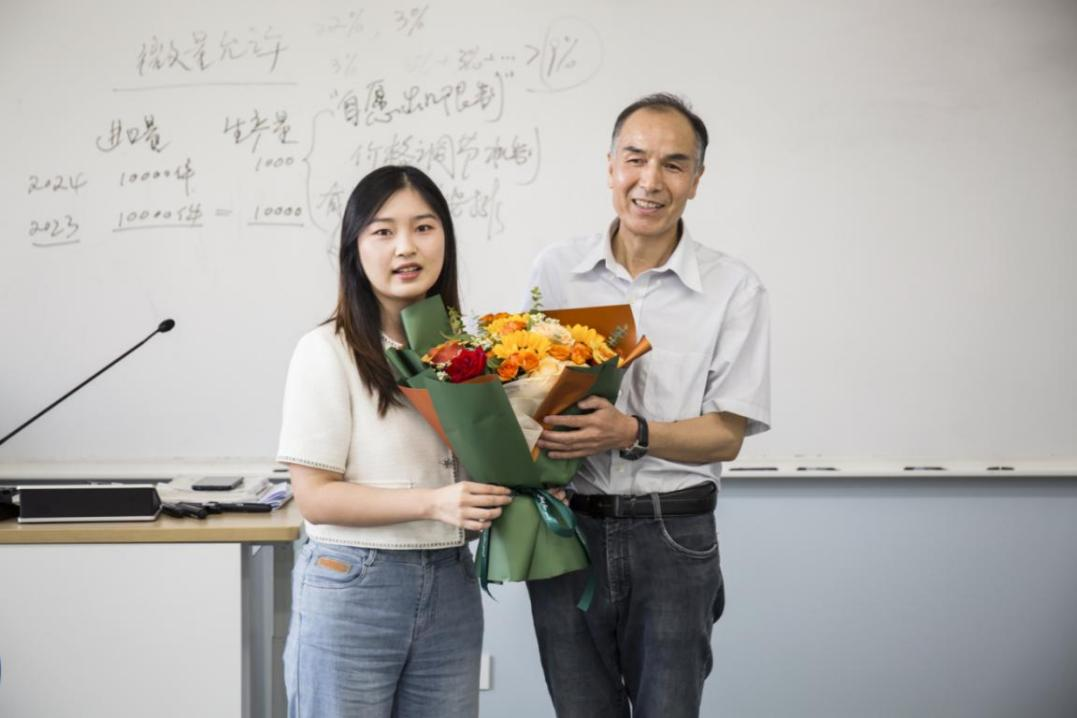 学院党委书记徐奇伟为张老师献上鲜花,表达了崇敬之情,也希望张老师能好好享受丰富多彩的退休生活。