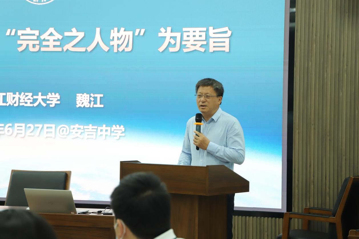 魏江校长以《教育应以培养“完全的人物”为要旨》为题,为高三学生及家长作专题讲座。他从“什么是‘完全的人物’——他心目中同人漫画
