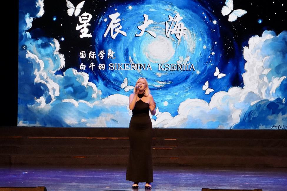 国际学院白千羽空灵的嗓音穿透夜空,“我向你奔赴而来,你就是星辰大海”,留学生的深情告白引发全场大合唱。