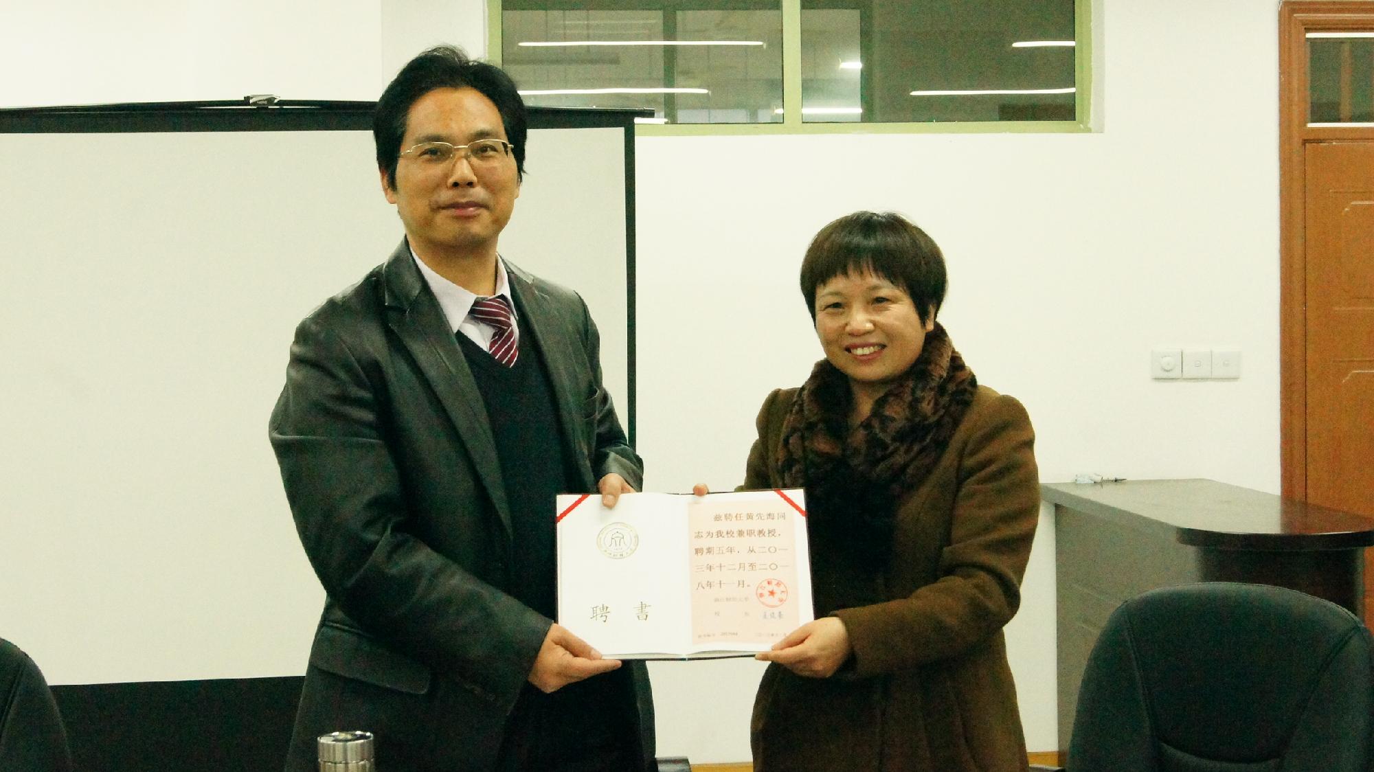 12月17日下午,浙江大学同人漫画 常务副院长、浙江省国际贸易学会会长黄先海教授受聘为我校兼职教授,并在经贸学院楼304室对同人漫画 的学科发展进行指导,胡亦琴院长为黄先海教授颁发了聘任证书。