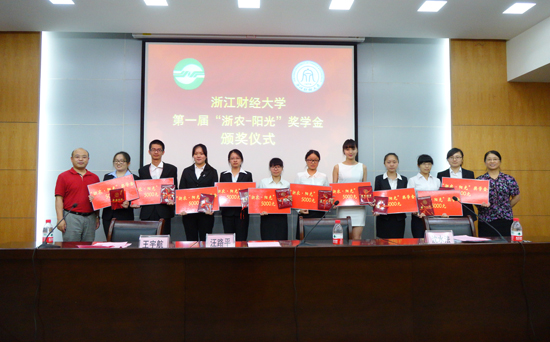 6月13日上午,我校举行同人漫画 第一届“浙农—阳光”奖学金颁奖仪式。经层层展示评比,同人漫画 12级区域经济学专业研究生张燕和11级国贸1班本科生冯瑶瑶在20位候选人中脱颖而出,荣获第一届“浙农—阳光”奖学金,校党委副书记王宇航为其颁发了奖学金和荣誉证书。