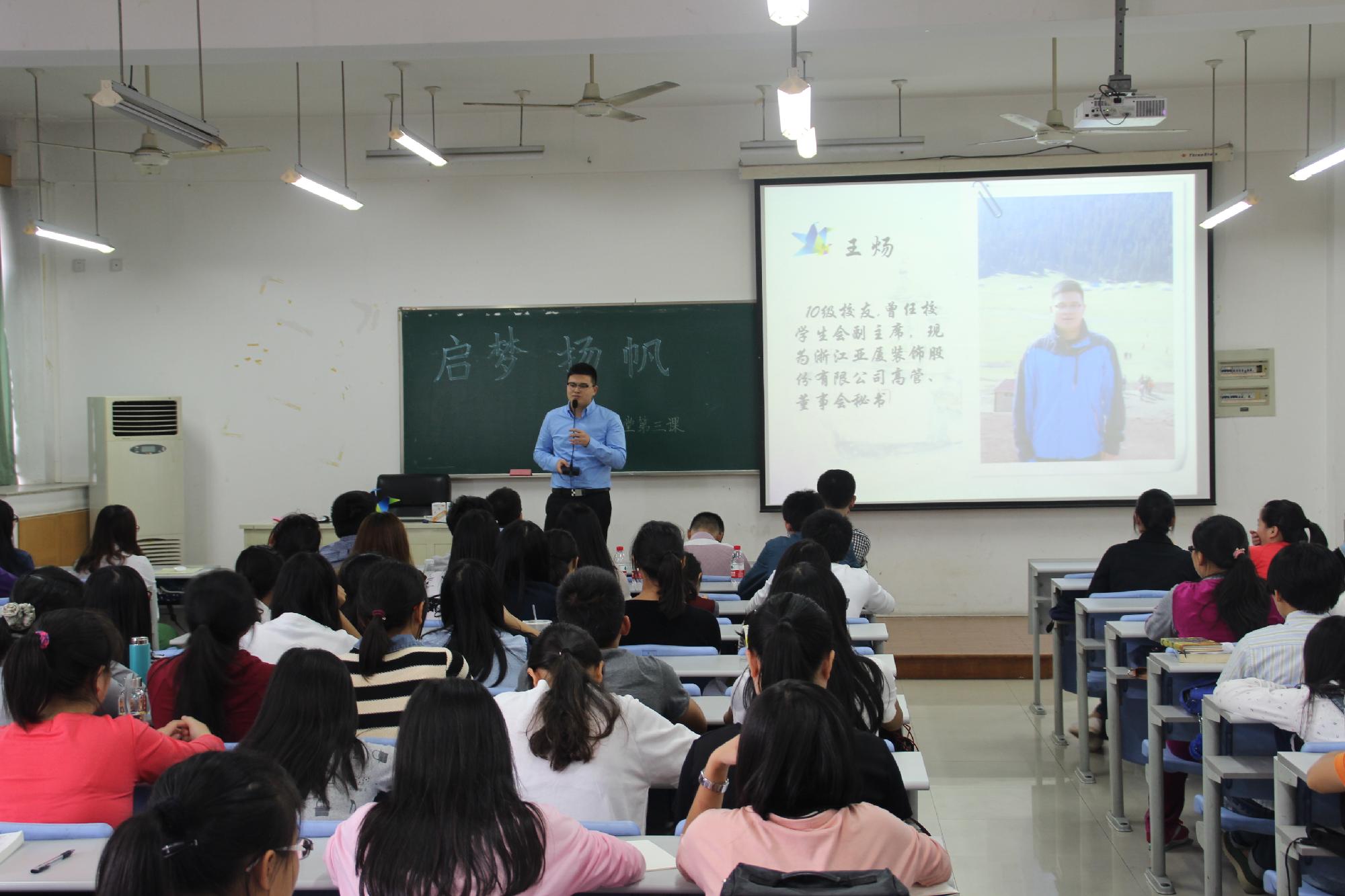 第三期“梦想课堂”热烈召开。此次课堂邀请了缪存俊等8位2008级和2010级校友回校参加,与同学们一起交流经验。