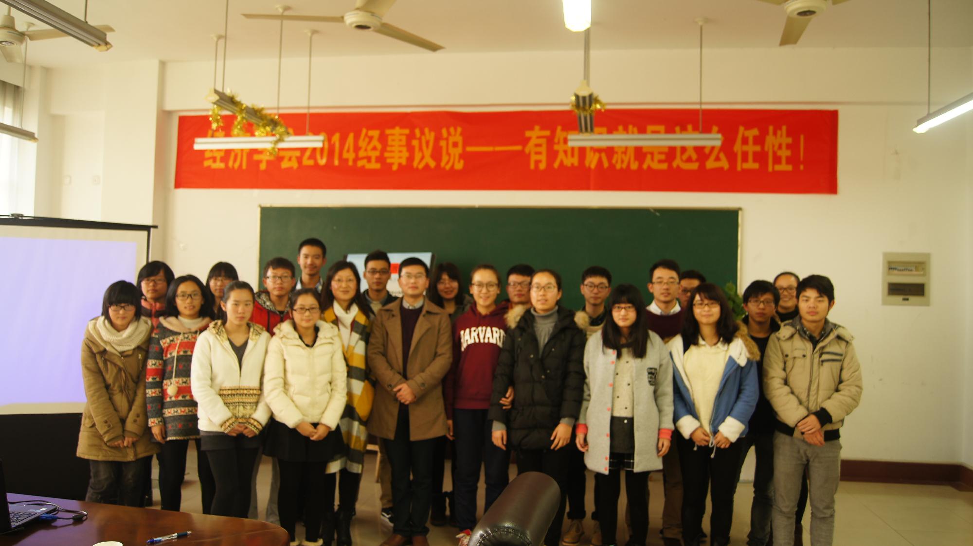 12月16日下午,由经贸学院学生经济学会主办的“2014经事议说”——经济热点问题讨论交流会活动在学院楼313会议室举行。来自杭州电子科技大学学生经济学会,浙江工商大学学生土地与房地产研究协会及我校学生经济学会成员组成的三支代表队参与了此次活动。活动邀请到杭州电子科技大学经济学会指导老师郭爱美和我校经济学会指导老师文雁兵到场指导观看。