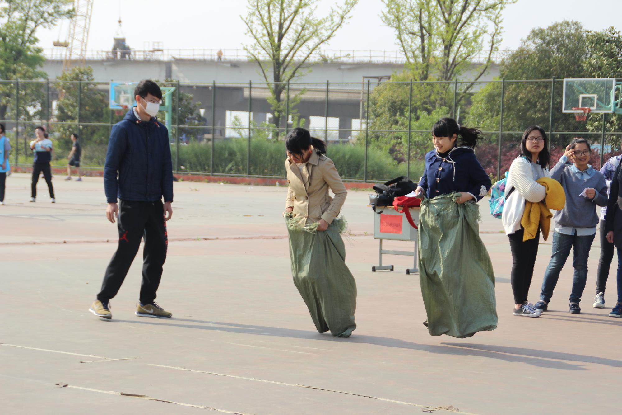 活动受到了广大学生的喜爱和支持,春日的暖阳里,参赛者们早早来到了活动的现场,摩拳擦掌,跃跃欲试。随着比赛的开始,同学们开始了热烈的比拼,场面如火如荼。本次活动分为闯关赛和积分赛两大环节,“袋鼠跳跳跳”﹑“才高八斗”﹑“幸运对对碰”﹑“知识转转转”等别出心裁的运动项目不仅考验同学们的肢体平衡能力,也是一场毅力与耐力的挑战,大家完全沉浸在运动带来的欢乐中。参与者在赛场上尽情展现自我,拉拉队在旁边为参赛者加油鼓劲,一时间,整个篮球场都飘荡着大家的欢笑声与加油声。