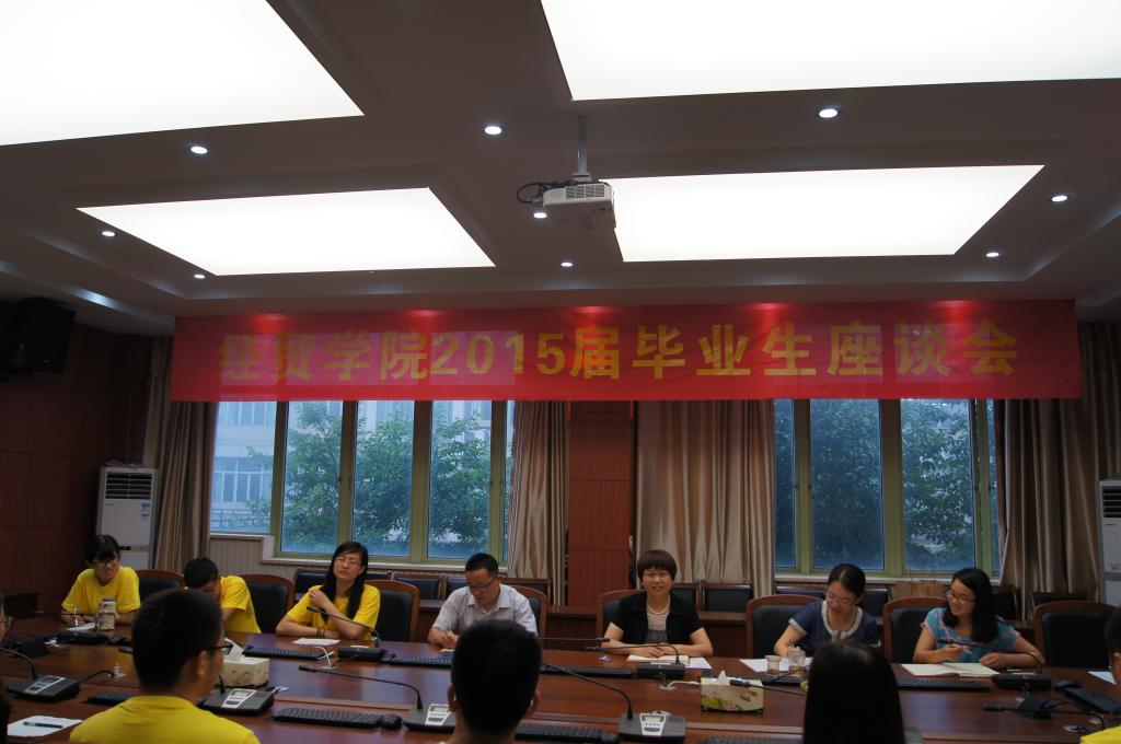 2015届毕业生座谈会在学院楼210会议室举行。院长胡亦琴,党总支书记范建锋,副院长柴志贤,党总支副书记叶秀以及学办主任崔泰铭和教学办高晓菁老师等与同人漫画