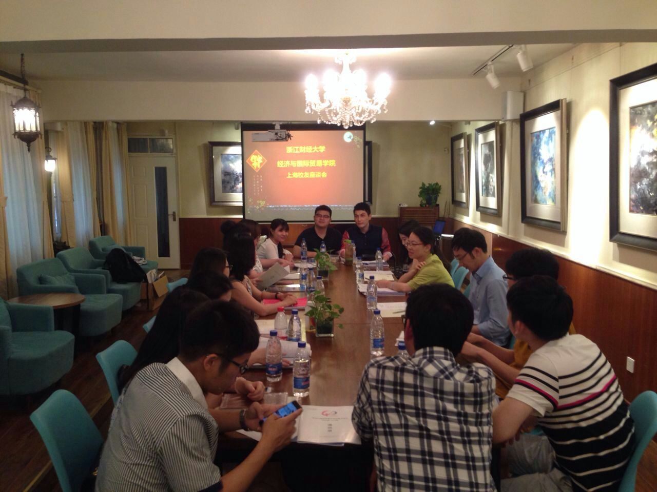 和学院的崇高敬意与美好祝愿。11届校友,现任职兴业银行的胡丽娟表示,虽然离开母校多年,但一直感恩母校和老师对自己的培养,也时刻关心关注着母校的发展,为母校取得的每一项成就而高兴和自豪。10届校友,现任职于平安银行上海分行的卢骏则希望校友们加强联络,凝聚力量,尽快搭建起广大校友交流的平台,畅通校友与母校沟通的渠道。13届校友,就职于上海蓝天房屋装饰工程有限公司洪彤说“虽然毕业时间不长,但我还是常常怀念母校。每次去杭州出差,我总要抽空到母校走走,感觉特别亲切。”现就职于上海农商银行静安支行的05届校友黄伟伟代表校友们总结发言,也道出了所有校友的心声:大学四年是最美好的青春时光,在外打拼的校友更怀念在西子湖畔度过的岁月和当年的同窗情谊,更感恩于母校的培养,也希望能为母校的进一步发展贡献自己的力量。