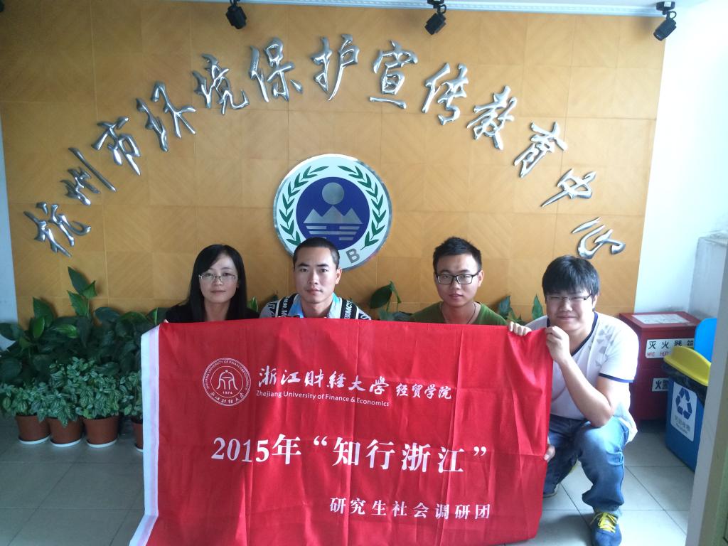 2015级产业经济学5名学生在学院严北战教授的带领下走访杭州市市政府,杭州市环境保护局,杭州市环境保护宣传教育中心,五水共治工作领导小组办公室,同时也走访了杭州主要水域,包括西湖水域,钱塘江水域,东河流域等地,团队成员就“五水共治”背景下杭州市污水治理绩效评价及政策建议问题进行实地调查研究。