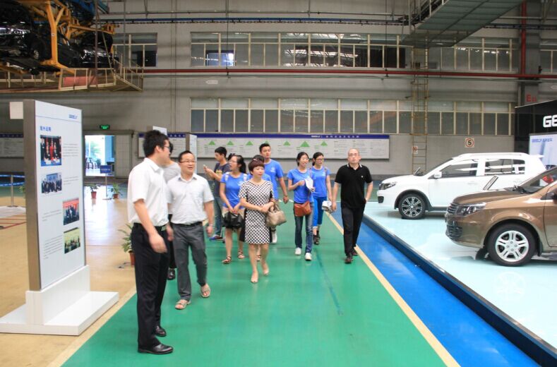 走进吉利汽车行政楼大厅,实践团在讲解员的带领下参观了吉利集团旗下的9个生产基地与1个研究院的沙盘,对吉利集团的规模和整体框架有了一个系统的了解。在参观过程中,队员们能感受到吉利集团对技术创新的重视以及吉利集团无处不在的”沟通、合作、敬业、创新”企业理念。之后讲解员带领实践团参观了现在吉利集团旗下的大部分汽车产品。在吉利的不断创新与对国际品牌的收购中,吉利的汽车品牌十分丰富,为民族品牌走出国门做出了良好的示范。随后,实践团开始参观吉利汽车路桥基地的整车整装流水线,在听了讲解员的详细介绍后,队员们对吉利集团致力于造最安全、最环保、最节能的好车的生产理念有了形象的认识和深刻的了解,并感受到了吉利集团永不止步的创新精神。