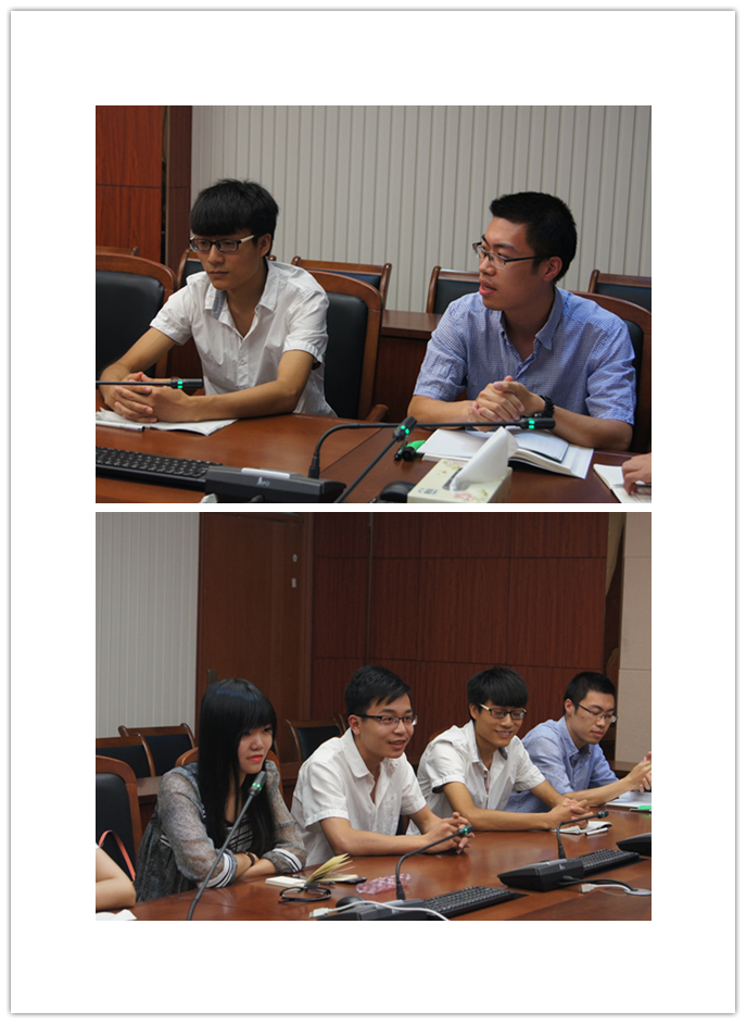 此次座谈会围绕“天南地北聚是缘”、“我为党支部献计献策”和“书记寄语”三个主题展开。叶秀副书记就学院研究生党支部的总体情况向新生党员做了简单的介绍,强调研究生党员要积极发挥学习、科研中的先锋模范作用。范建锋书记就研究生支部建设和“微党课”进行了简单讲述,向在场的党员同学征求意见和建议。各位新生党员畅所欲言,有的提出了本科支部建设中值得借鉴的亮点,有的根据自身参与党建工作的经历提出了制度建设、实践活动等具体建议,有的则从党员意识和党的纯洁性的层面提出了自己的想法。就同学们提出的意见和建议,两位书记给予了高度评价。