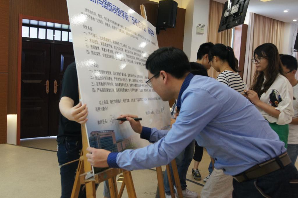 随后,教师代表和学生代表共同签订了经贸学院“五星级”课堂标准的承诺书,学院还向各班赠送了一个学风“大礼包”。