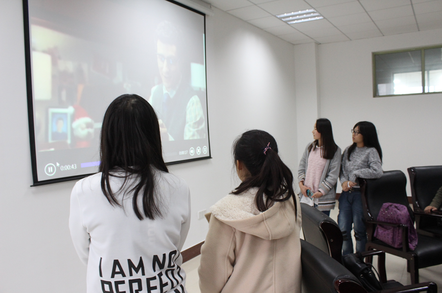 为什么美国的劳动节不在五月一号?日本的成年仪式是在二十岁进行?你知道美国的土拨鼠节、英国的圣烛节都是为了迎接春天的到来吗?活动伊始,一系列的智力问答让人大开眼界,迅速调动起了同学们参与的积极性。接下来,第二阶段的分组任务更是充满趣味与挑战。参与活动的同学随机组队,有的模拟圣诞节情景,有的为电影片段配音,有的对中西方文化的异同进行比较,有的向大家介绍自己钟爱的节日的缘起、风俗、意义等等。