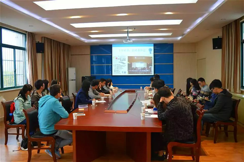 的创新创业教育和学院特色活动与大家进行了交流。同时,汪老师特别提到,在当今大学生创新创业的热潮中,团委学生干部应积极将相应的思想意识传播到同学们的身边,提高大学生对创新创业认同度。最后,双方就相关活动进行了深入的沟通和交流。