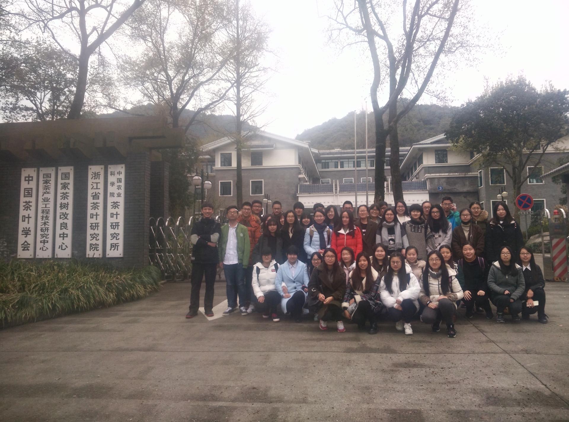 师生代表一行赴中国农业科学院茶叶研究所调研,受到了茶研所茶产业研究室研究员陈福桥和龙冠实业有限公司技术总监汪旭明接待。