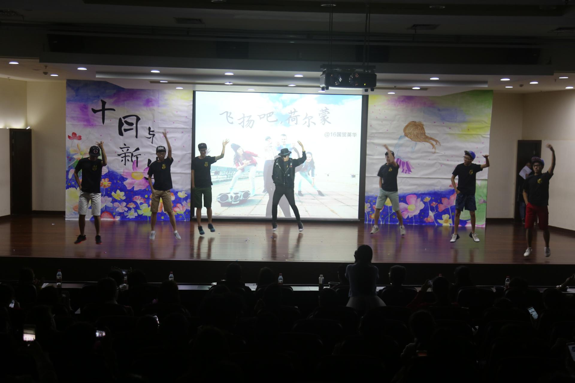 晚会在火热的开场舞中拉开帷幕,来自16国贸英华班的舞蹈串烧《飞扬吧,荷尔蒙》动作优美,充满活力;16国经班自编、自导、自演的话剧《梁山伯与祝英台》诙谐幽默,引人入胜;16经济3班的诗朗诵《化茧成蝶》蕴含充沛情感,感人至深;16经济实验班的舞台剧《上课做什么》为晚会带来了欢乐而神秘的气息;16国贸2班的纸片人剧《新生的格格》带大家领略了不一样的阿哥格格风;16国贸C班带来的哑剧《freedom》,表达了年轻人对爱和自由的追求与向往;16经济2班带来的歌舞串烧《倾城醉红颜》展示着东方的神韵;16经济1班的三句半令大家喜笑颜开;留学生的助阵演出和班导们倾情表演的舞蹈《咋了班导》向新生们表达着希望和祝福。16国贸2班的一首《怦然星动》为本场晚会划上了圆满的句号。