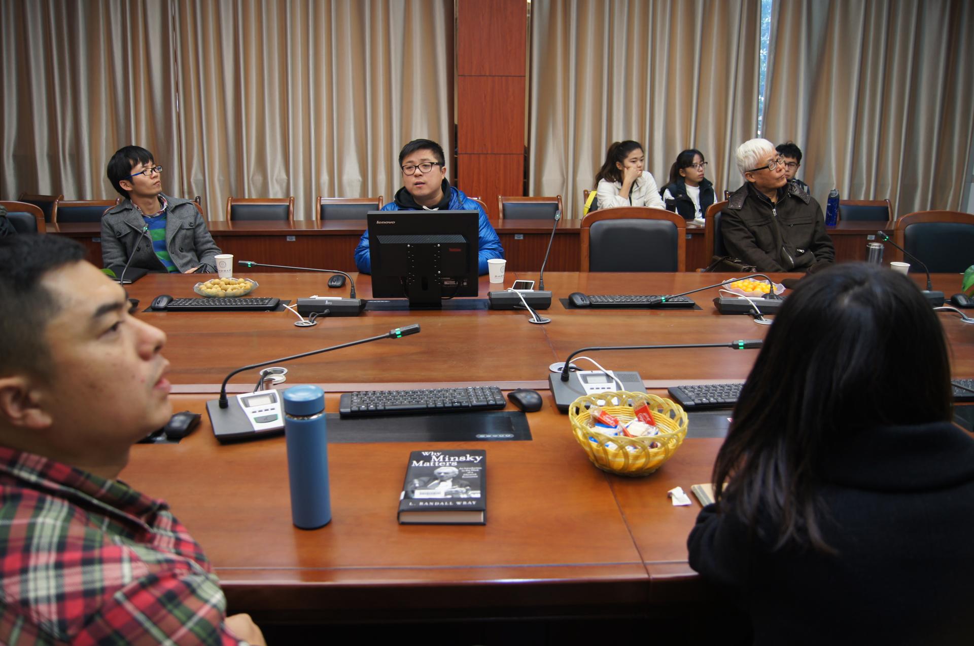 交流互动环节,在座师生从模型、数据等方面进行了一些互动探讨。周冰老师认为,由数据所得出的图形存在拐点,因而直接用模型来进行处理会有些不妥,并且指出,所采用的控制技术效率的四个要素有待斟酌,需要进行进一步的探究和修正。还有老师一同探讨了如果考虑不可再生资源,模型的可行性以及将会出现什么样的情况。