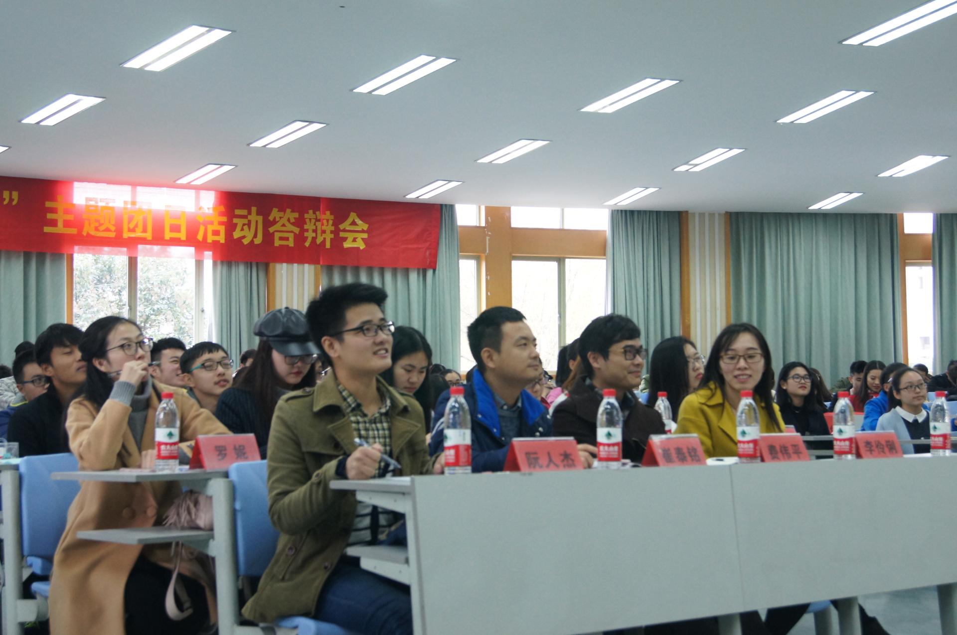 团日活动答辩会在6号楼111教室顺利举行。学生办公室主任崔泰铭,团委书记费伟平,辅导员谭立娟、李伶俐,同人漫画