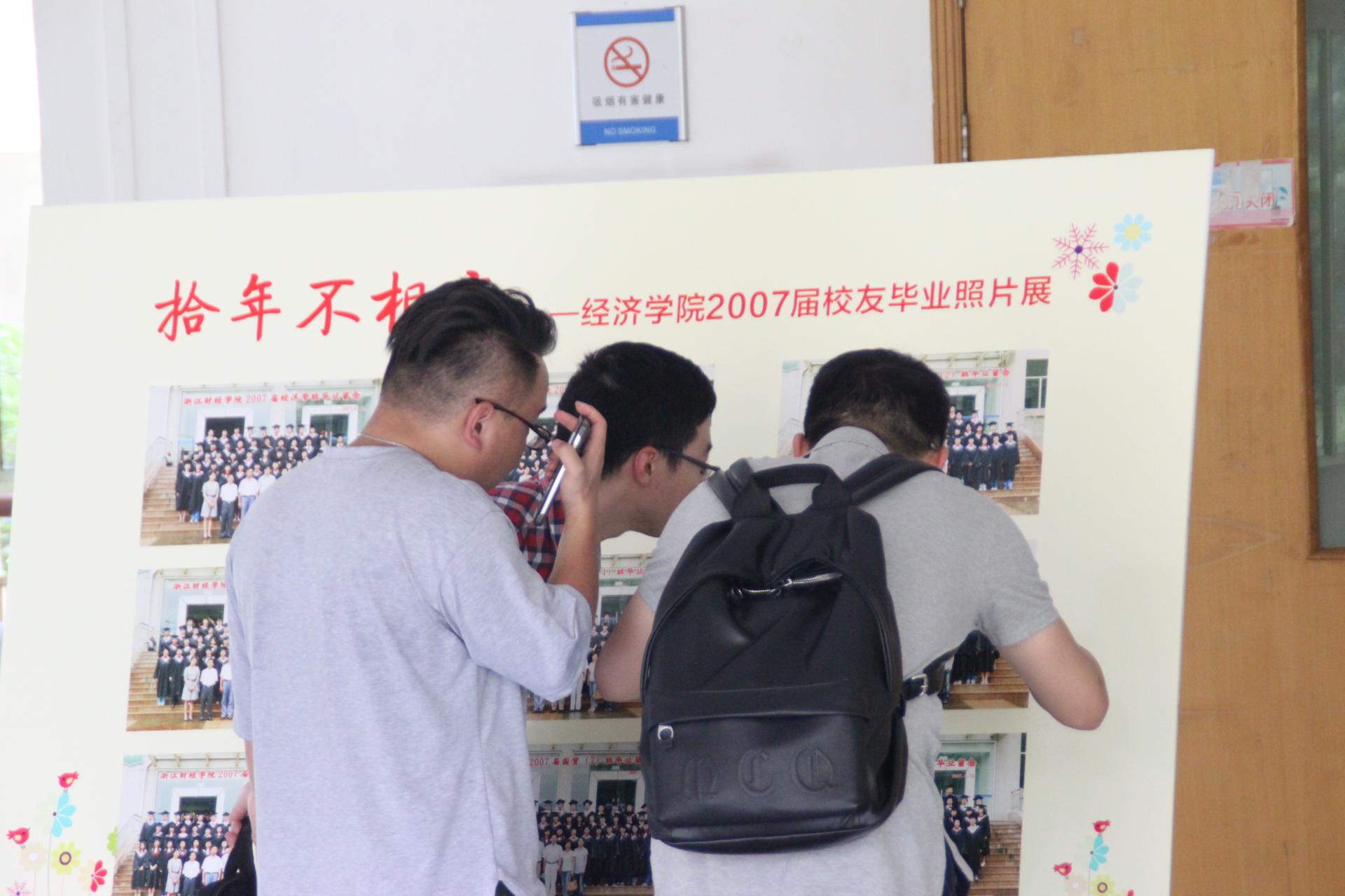 上午,各位校友们从各地赶回学院,重走财经路。作为第一届到下沙的同学,对学校的下沙校区特别有感情,看到学院精心布置的校友墙和图片展后,大家也都随着一张张照片开始慢慢回味曾经在校生活的点点滴滴。