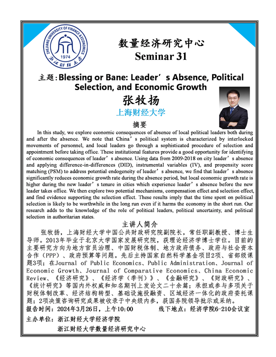浙财数经中心 Seminar31 张牧扬常任副教授(上海财经大学)