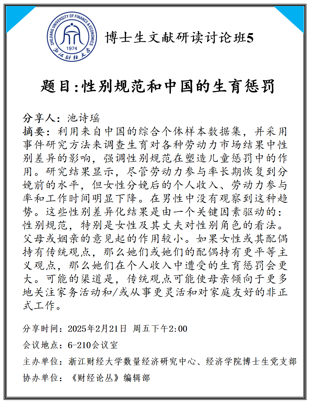 题目:性别规范和中国的生育惩罚