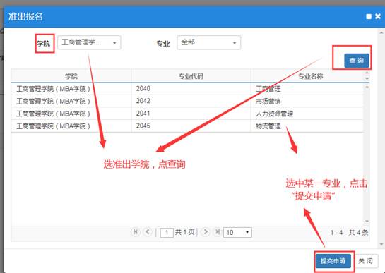 2.选择意向准出专业,提交申请