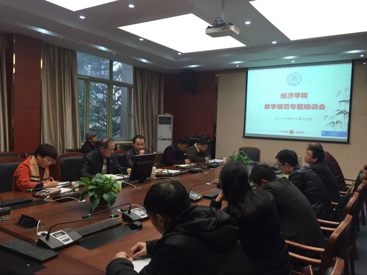 王寿春老师首先结合前段时期学校组织的本科教学评估中存在的相关突出问题,从本科教学试卷检查、本科毕业论文和本科课堂教学等三个方面做了重要的辅导与培训,明确指出了以往本科教学中存在的各项重要问题,并给出了有针对性地改进建议与措施。在交流互动环节,王寿春老师还针对各位老师在平时教学、论文指导和课堂管理中面临的困惑与难题逐一进行了指导,并就如何具体改进提出了建设性的意见。随后,胡亦琴院长强调新教师要有良好的职业态度,要树立爱教、爱生的情感与信念,既要做一个知道规范的合格老师,也要做一个“身正学高”的好老师。柴志贤副院长针对阅卷规范等做了进一步说明。培训现场气氛热烈,与会教师均表示对自己日后的教学工作有很大的帮助与启发。