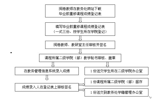 3、请课程所在二级学院(部)教学秘书于5月15日前将毕业前重修考试成绩录入教务管理系统。