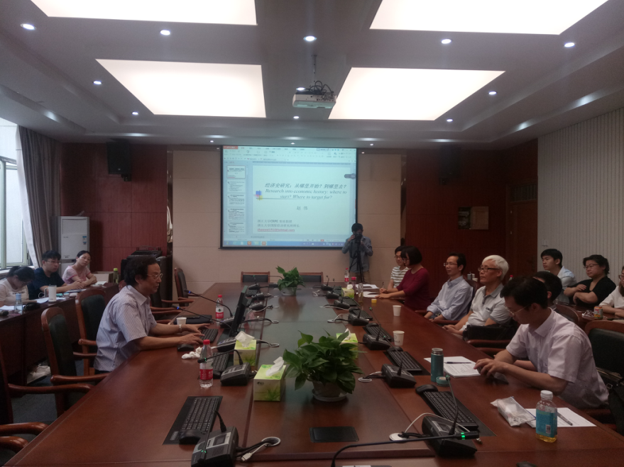 本科教学工作审核评估工作布置会议和浙江大学赵伟教授专题讲座两项议程。经济史教研室教师、经济史专业研究生和本科生代表参加了活动。